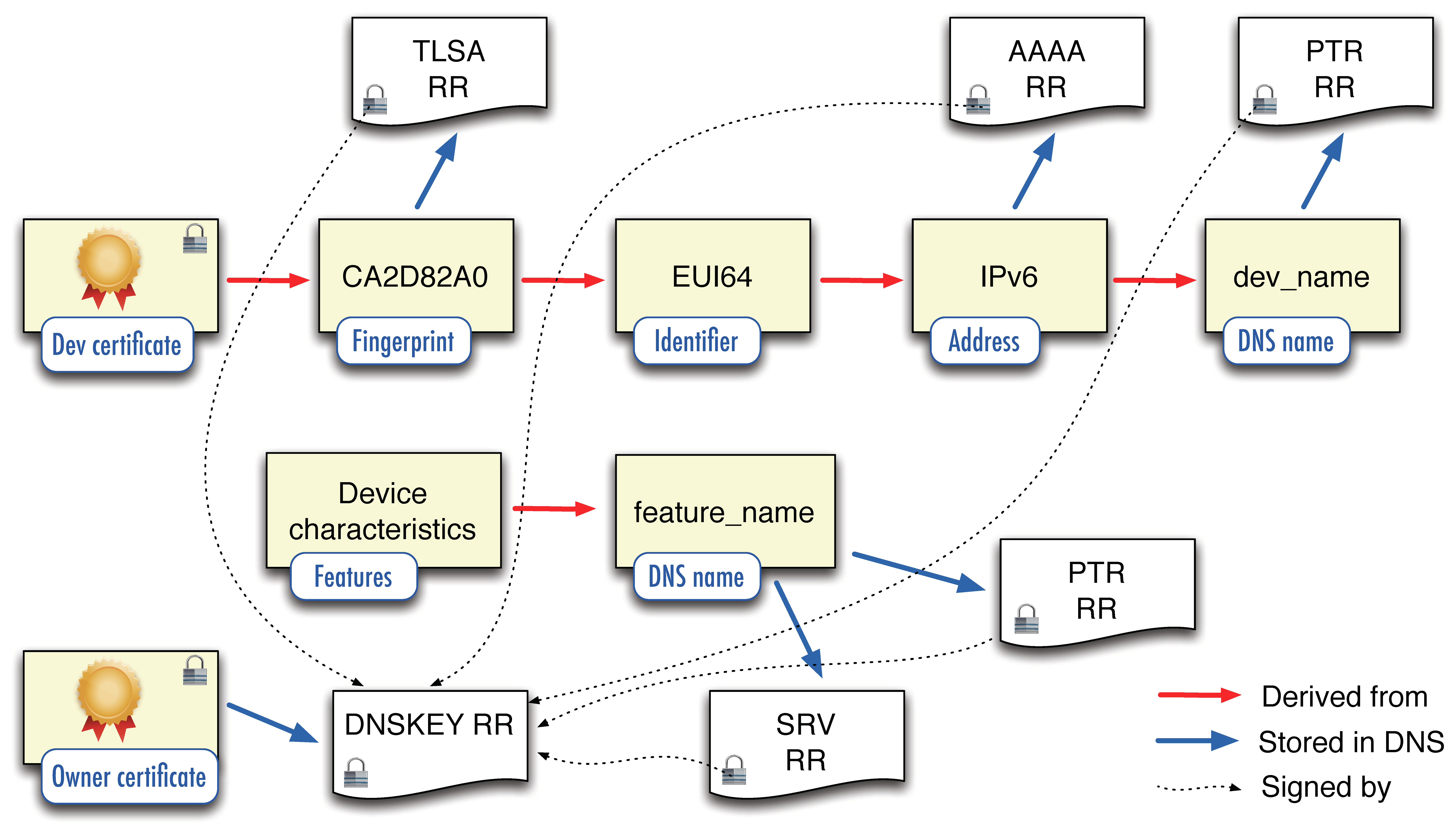 O2. Design a Lightweight Authentication and Authorization Framework for IoT Devices. For authentication and authorization in a constrained environment, an IoT device needs to store a compressed X.509 certificate. Towards this goal, we propose to explore compressing X.509 certificates with Concise Binary Object Representation (CBOR) using CBOR Object Signing and Encryption (COSE). In the Internet, DANE Transport Layer Security Authentication (TLSA) records enable storing a SHA 256 certificate fingerprint rather than the whole X.509 certificate and take advantage of DNSSEC to guarantee data integrity. Thus, entities in IoT constrained networks and in the Internet can share the same variant of a X.509 certificate.